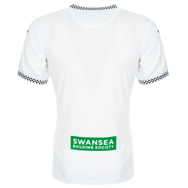 Celebrate heritage with a modern twist in the official 2025/26 Swansea City home shirt. Honouring the Swans' proud traditions, this season’s jersey returns to the club’s iconic white, elevated by a sublimated check design inspired by the beloved 1996-97 kit – a year etched in history as Swansea City reached the Third Division play-off final under Jan Mølby. The classic check motif is echoed subtly through the collar and sleeve trim for a refined, retro nod.